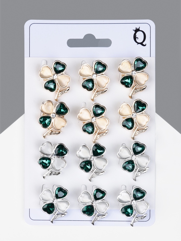 Брошь «Клевер» на удачу, МИКС, (неделимая фасовка 12 шт., цена за шт.)