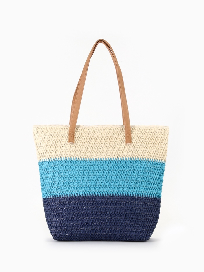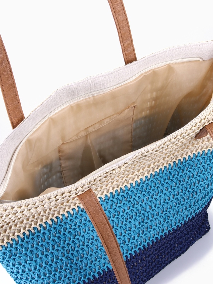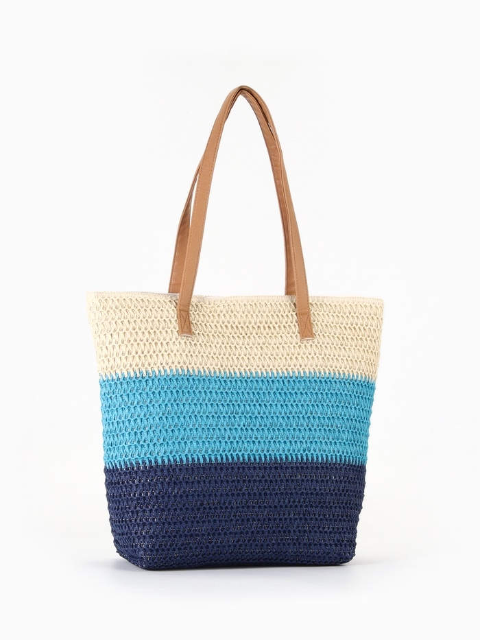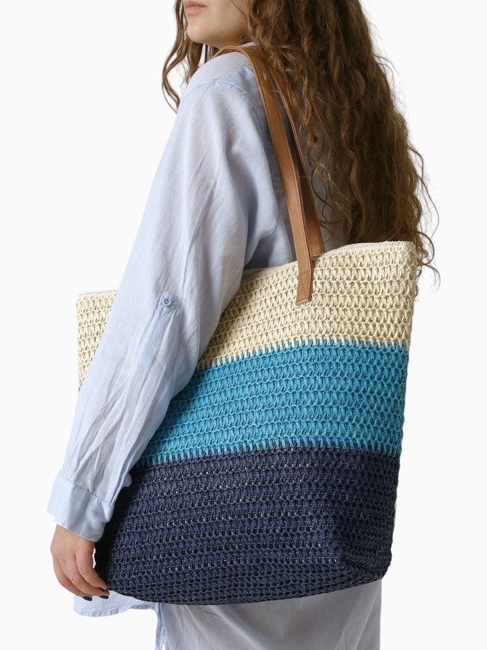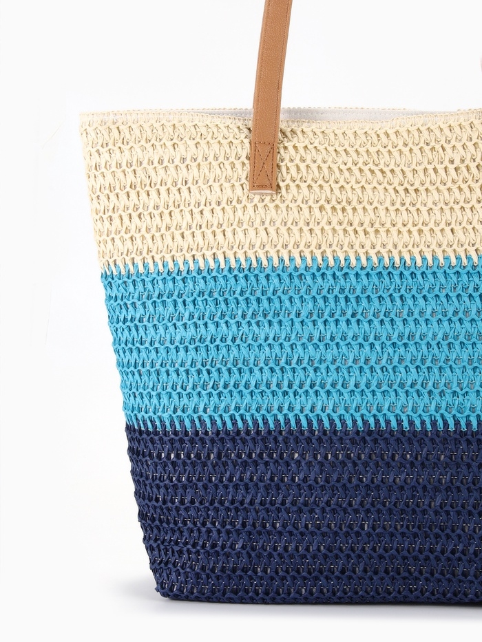 Сумка пляжная Полосы, 47*12*35, отд на молнии, подкладка, беж/синий