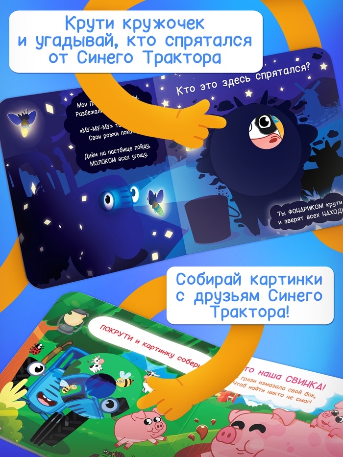 Книга картонная с фонариком "Я иду искать", 20х20 см, 20 стр., Синий трактор