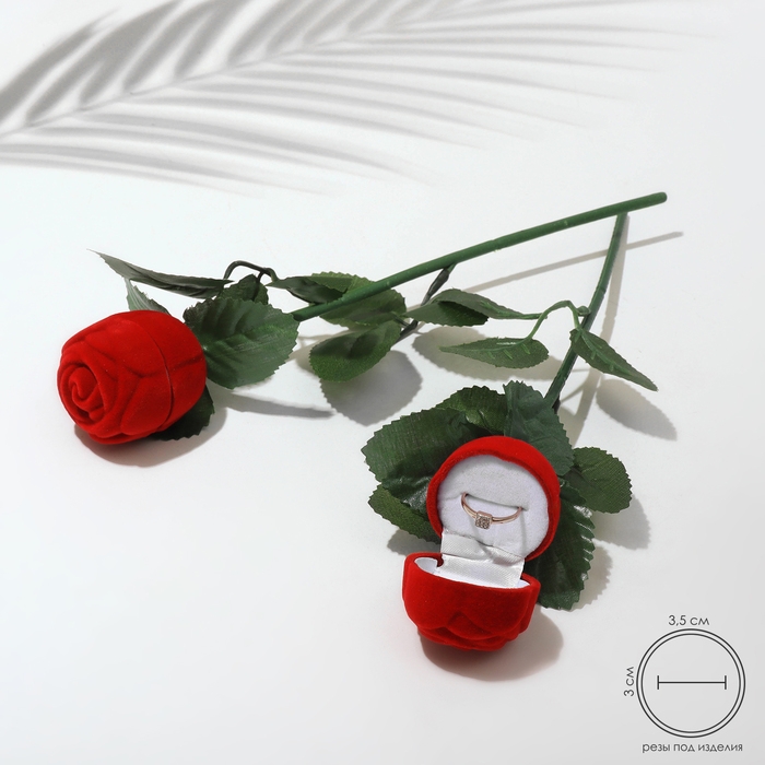 Футляр бархатный под кольцо «Роза на стебле» 4,5×4,5, цвет красно-зелёный, вставка белая