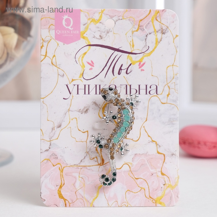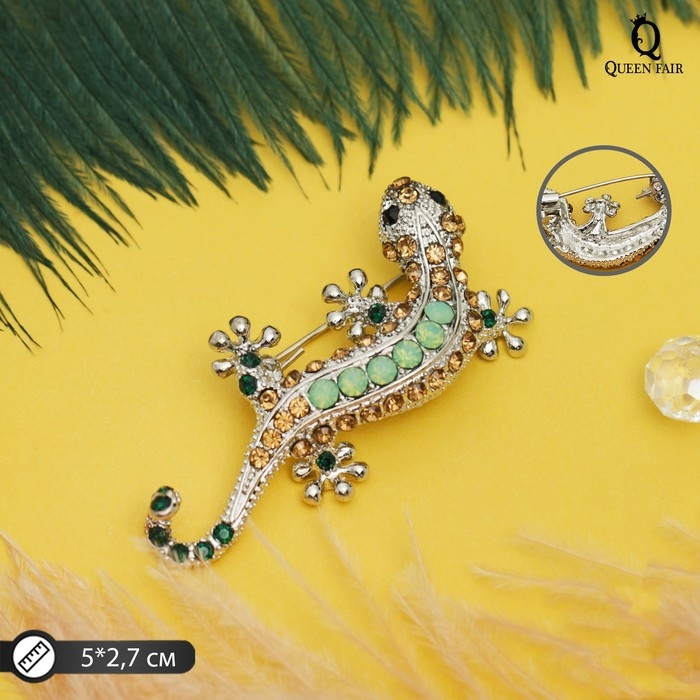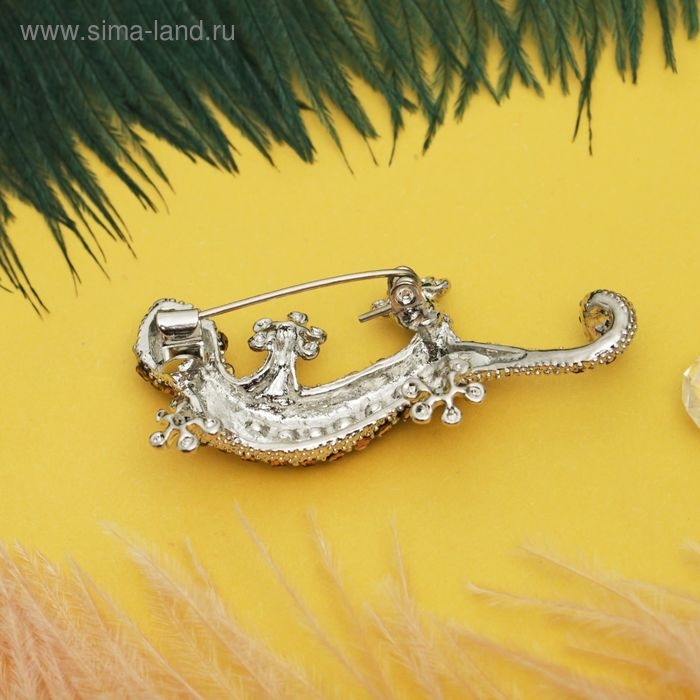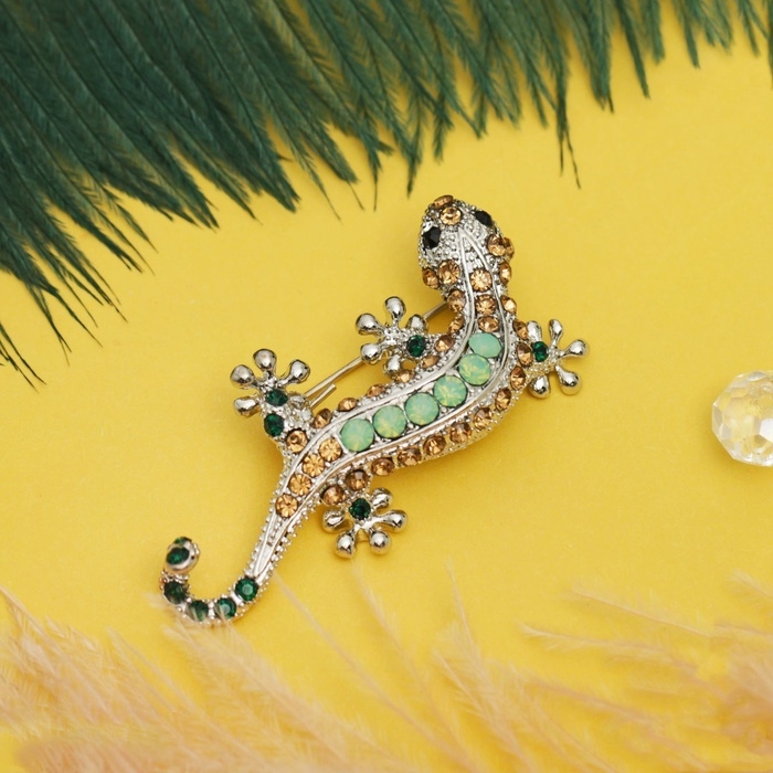 Брошь «Ящерица - хамелеон», цветная в серебре