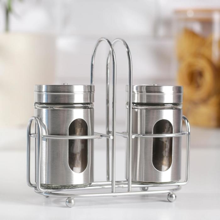 Набор для специй из стекла на подставке «Стиль», 2 предмета: солонка и перечница, 80 мл