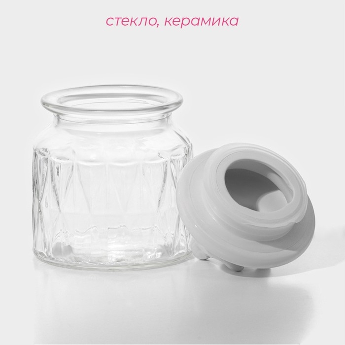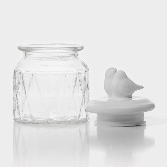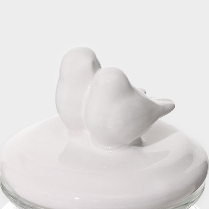 Банка стеклянная для сыпучих продуктов с керамической крышкой Доляна «Голубки», 500 мл, 11×17 см