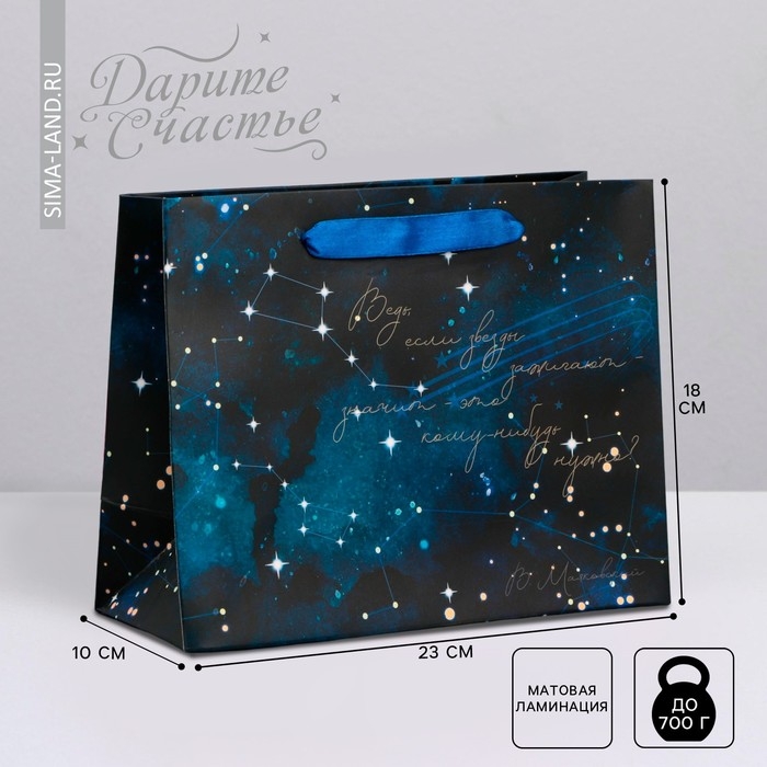 Пакет подарочный ламинированный горизонтальный, упаковка, «Звёзды», MS 23 х 18 х 10 см