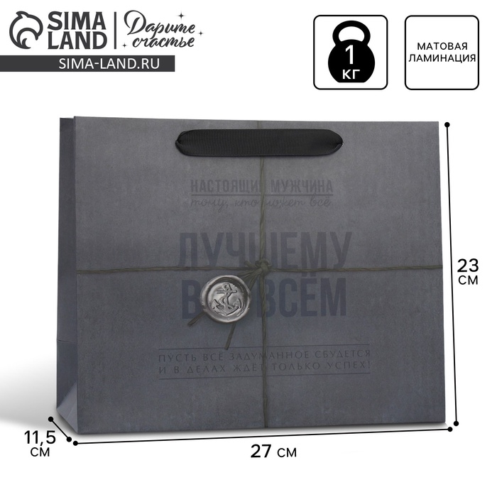 Пакет подарочный ламинированный горизонтальный, упаковка, «Лучшему во всём», ML 27 х 23 х 11,5 см