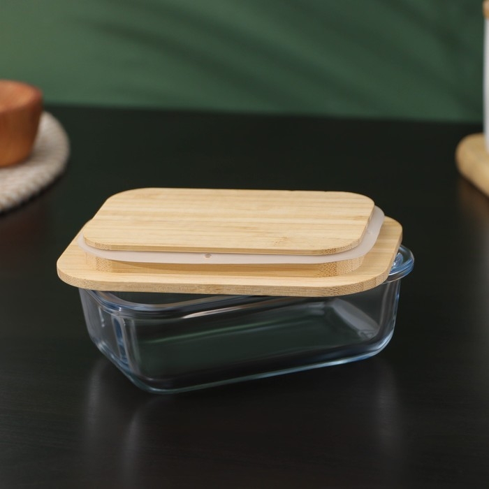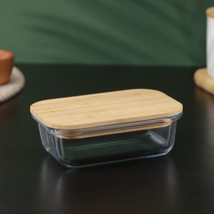 Контейнер для еды из жаропрочного стекла с бамбуковой крышкой BellaTenero «Эко», 370 мл