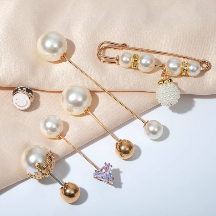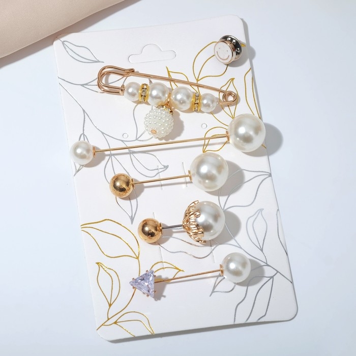 Набор булавок (6шт) «Жемчужная капель», 6,3см, цвет белый в золоте