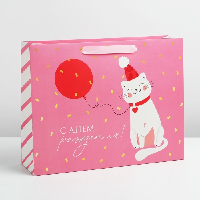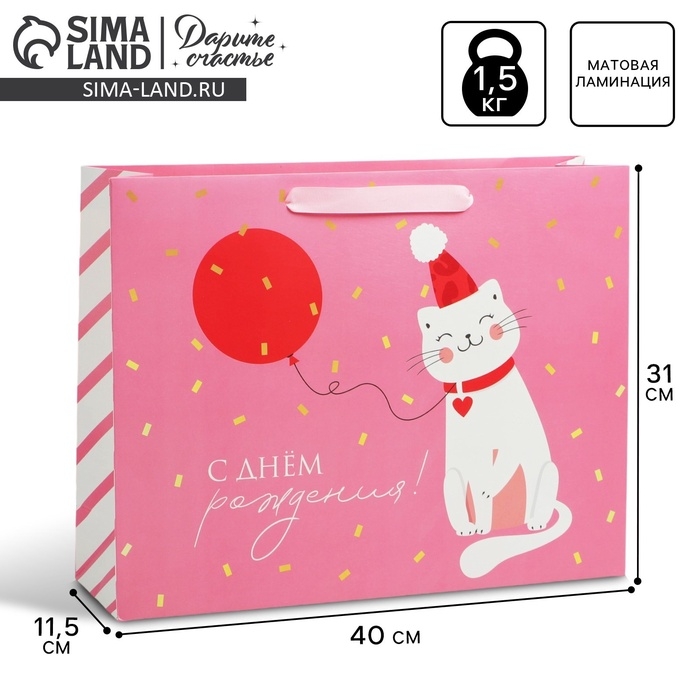 Пакет подарочный ламинированный горизонтальный, упаковка, «Happy», L 40 х 31 х 11,5 см