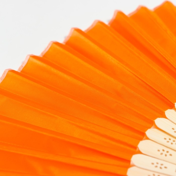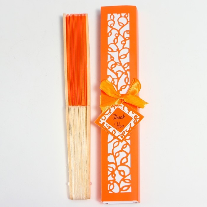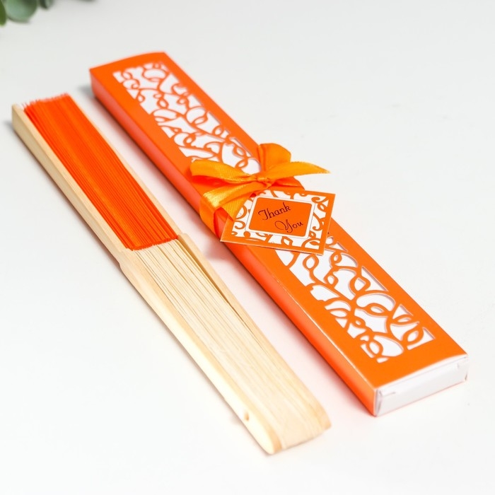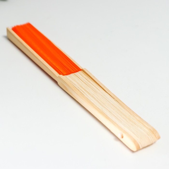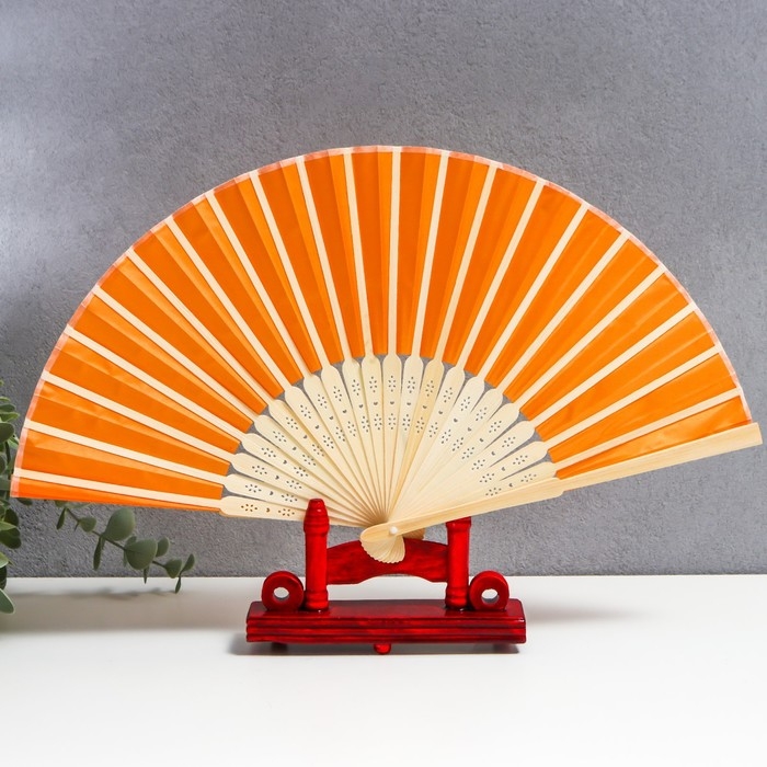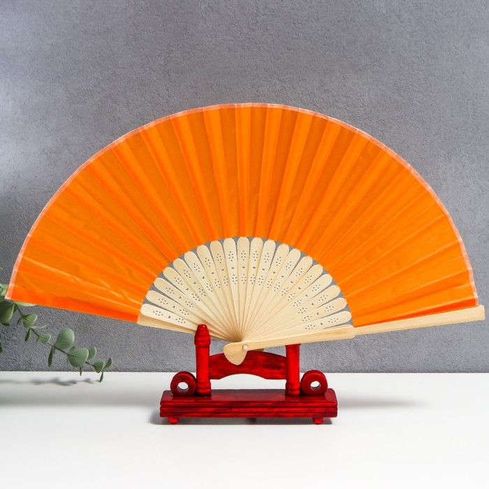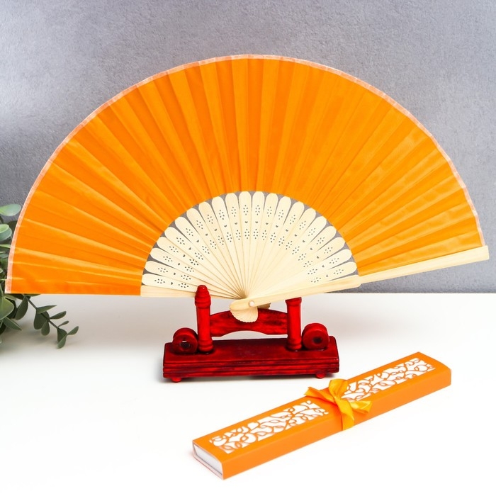 Веер бамбук, текстиль h=21 см "Моноцвет" в коробке, оранжевый