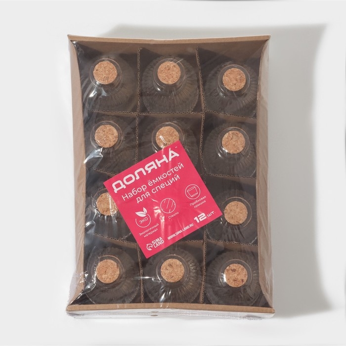 Набор стеклянных баночек для сыпучих продуктов с пробковой крышкой Доляна «Парфе. Афина», 90 мл, 5,4×9,7 см, 12 шт