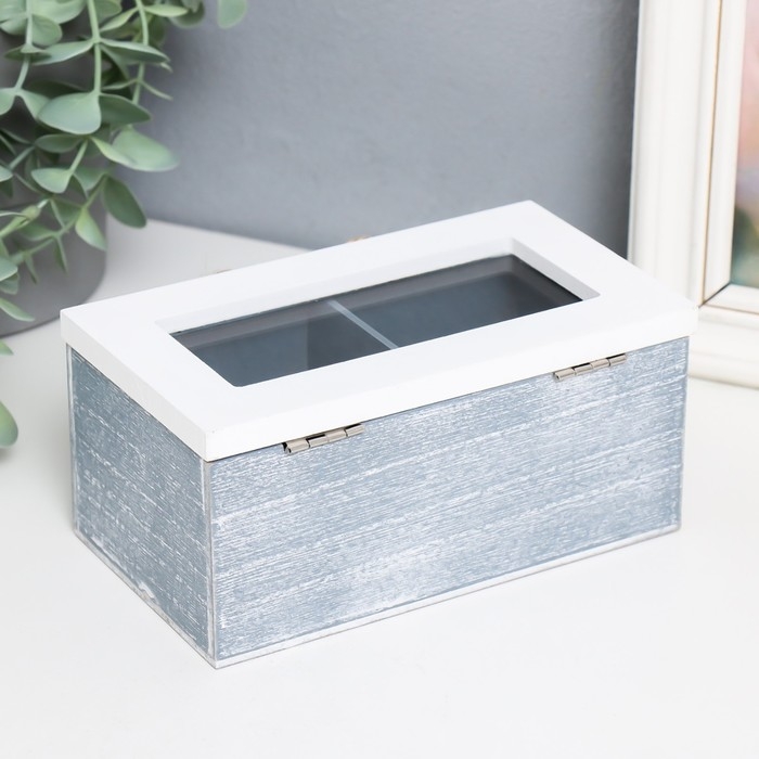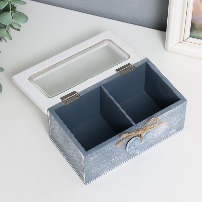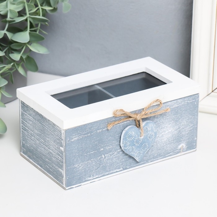 Шкатулка дерево, стекло с делениями "Звёздное сердце" 16,4х9х7 см