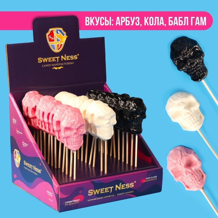 Хеллоуин. Карамель леденцовая "Черепа" на палочке, 24 г