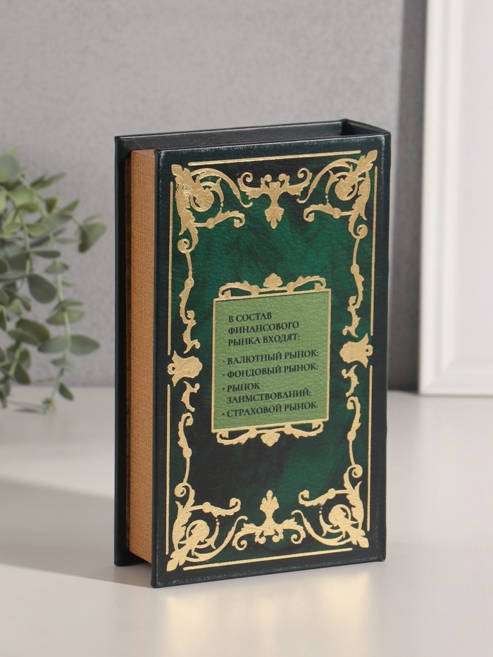 Сейф-книга дерево кожзам "Финансовый рынок" тиснение 21х13х5 см