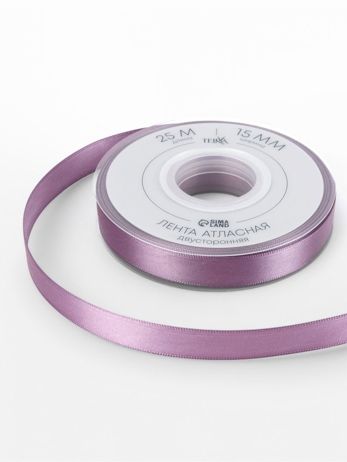 Лента атласная двухсторонняя №0434 15мм*25±1м сиреневый TR