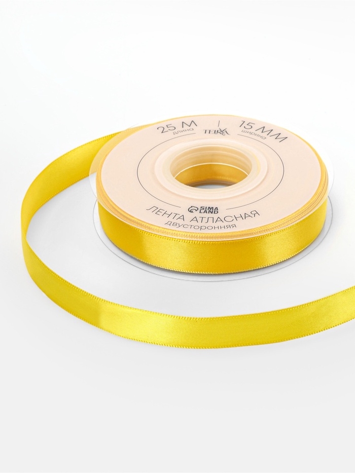 Лента атласная двухсторонняя № 0645 15мм*25±1м жёлтый TR
