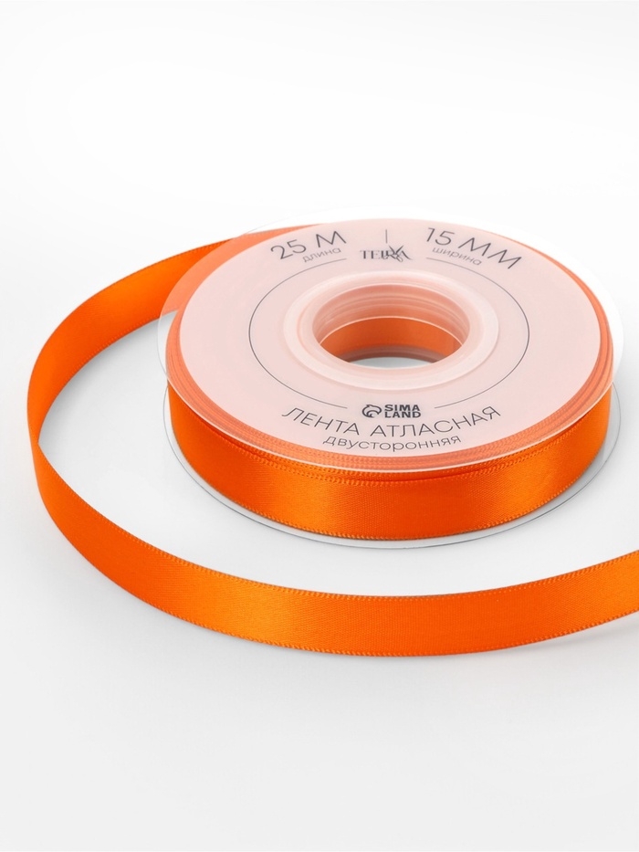 Лента атласная двухсторонняя №751 15мм*25±1м ярко-оранжевый TR