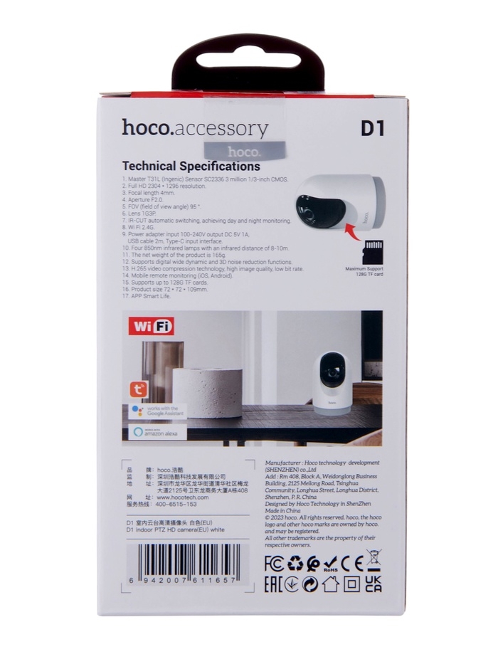 Камера видеонаблюдения Hoco уличная HD, D2 PTZ, белая