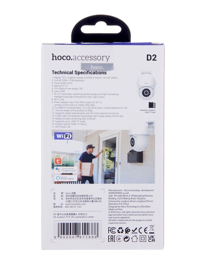 Камера видеонаблюдения Hoco уличная HD, D2 PTZ, белая