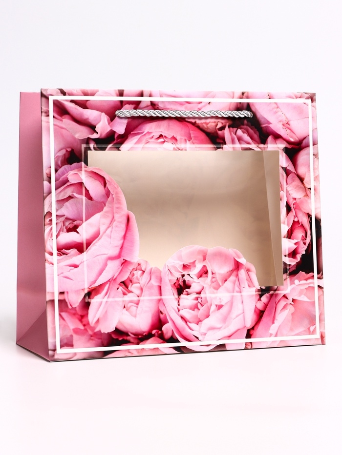 Пакет подарочный с окном "Цветы", 25 х 10 х 22 см