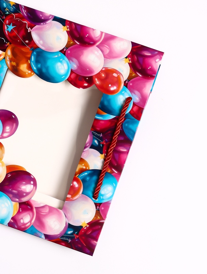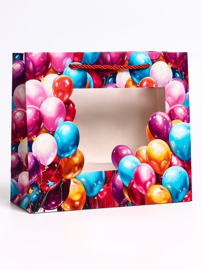 Пакет подарочный с окном "Воздушные шары", 25 х 10 х 22 см