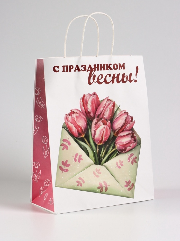 Пакет подарочный крафт, «С Праздником Весны!» 26×11×32 см