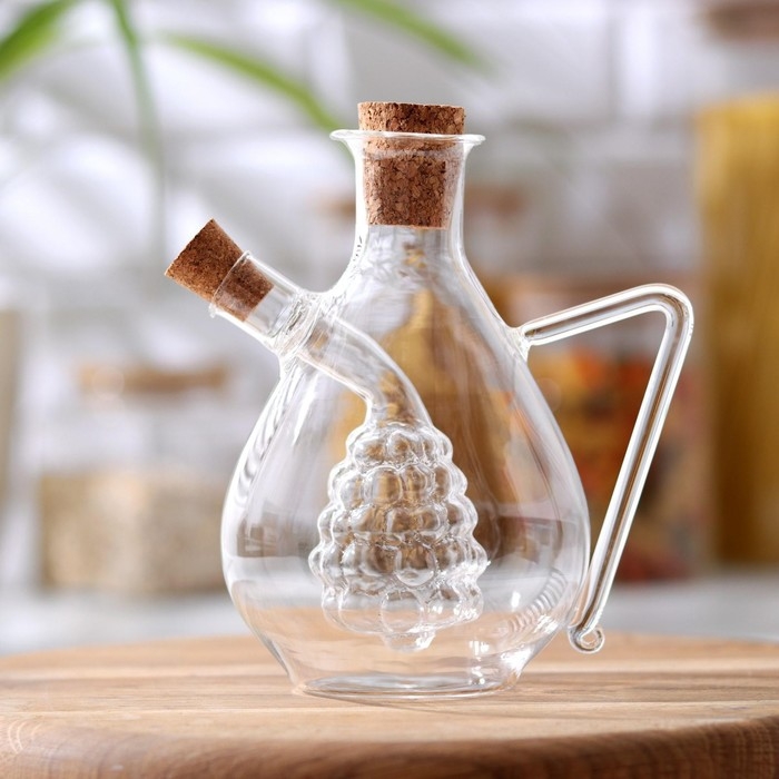 Бутыль стеклянная для соусов и масла 2 в 1 «Фьюжн. Виноград», 450/60 мл, 11×9,5×15,5 см