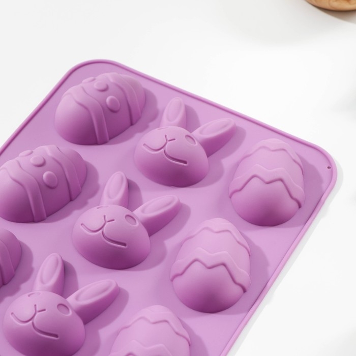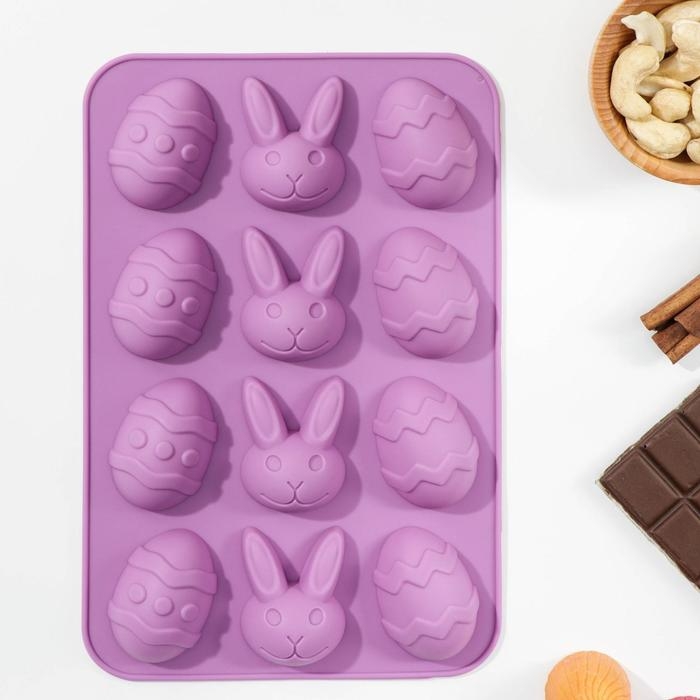 Форма для шоколада Доляна «Пасха», силикон, 23×15×2 см, 12 ячеек, сиреневая