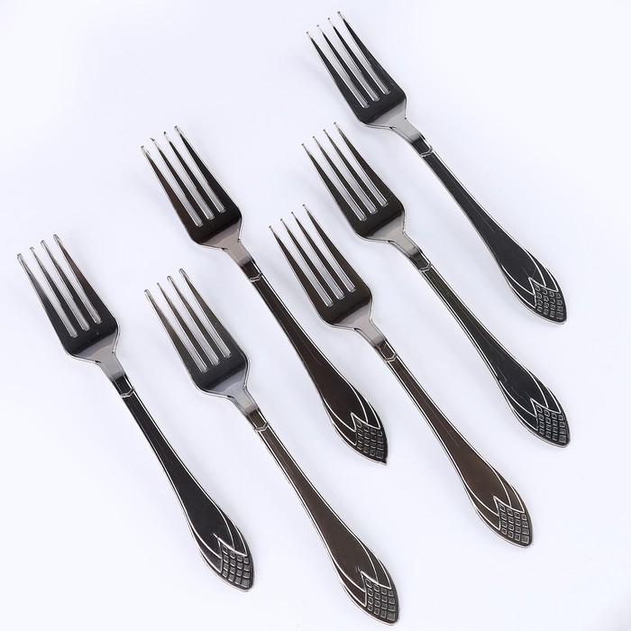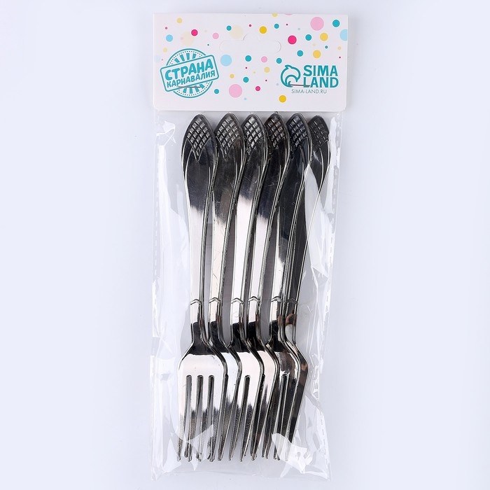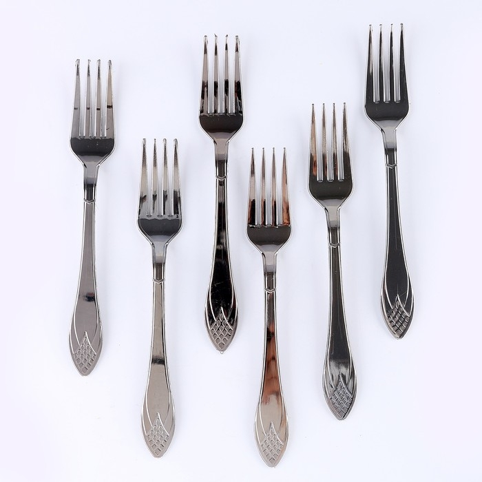 Вилка пластиковая одноразовая, 19 см, цвет металлик, 6 шт/уп