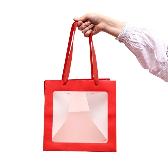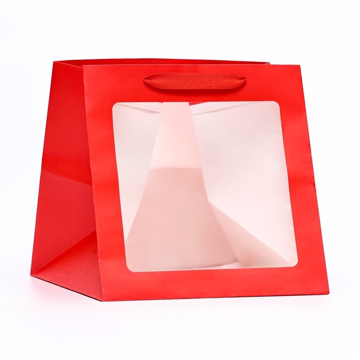 Пакет крафт с квадратным дном и окном, 25 х 25 х 25 см, красный
