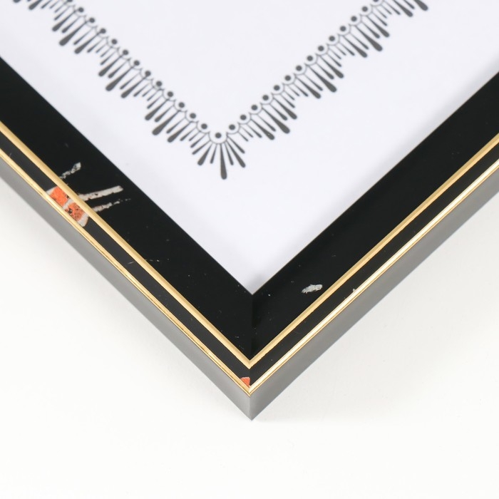 Фоторамка пластик формат А4 "Черный мрамор с золотой рамкой" 23х32 см