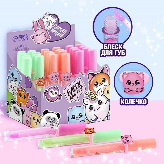 Детский блеск для губ «Милота» с колечком, 8 мл, МИКС