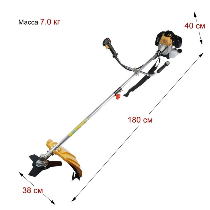 Разборная складная конструкция упрощает транспортировку и хранение инструмента. Специальный защитный кожух обеспечит безопасность оператора от вылетающей травы во время эксплуатации. В комплект входит наплечный ремень, благодаря которому равномерно распределяется нагрузка на мышцы во время работы.