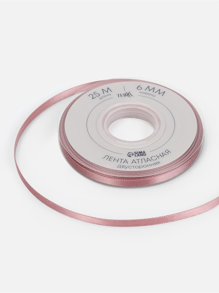 Лента атласная двухсторонняя №164 6мм*25±1м пудровый TR