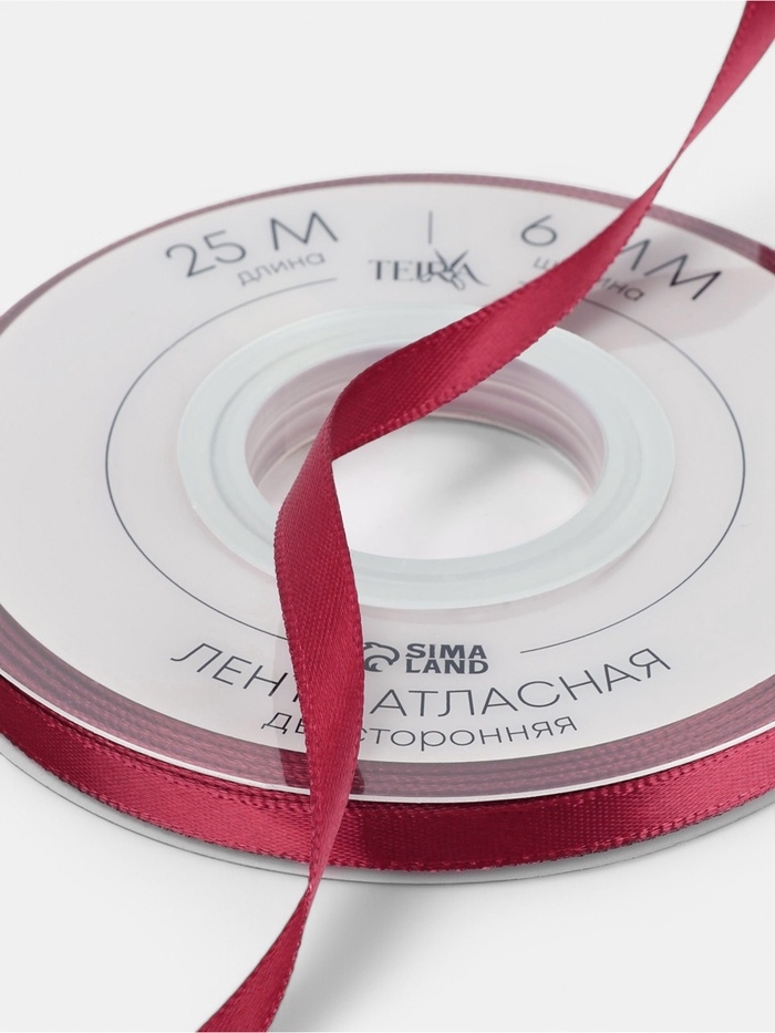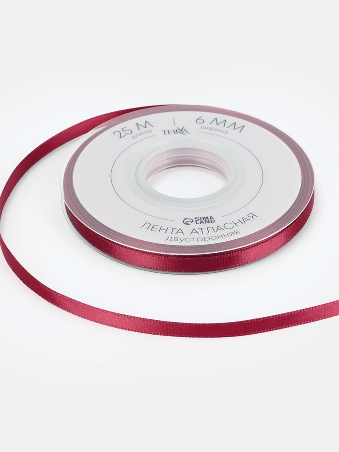 Лента атласная двухсторонняя №0789 6мм*25±1м бордовый TR