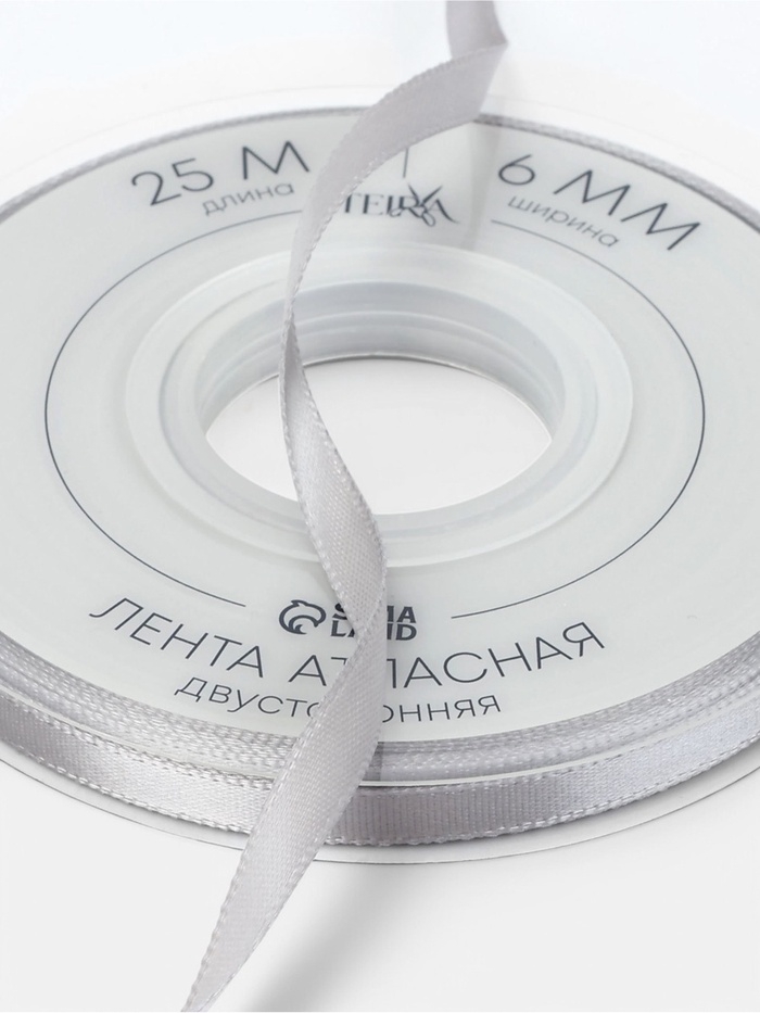 Лента атласная двухсторонняя №837 6мм*25±1м серебряный TR