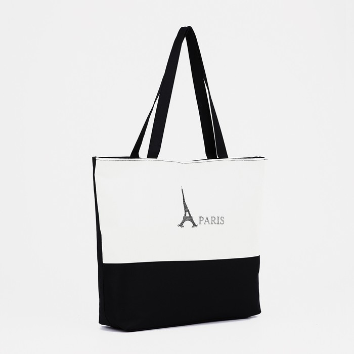 Шопер на молнии с подкладкой, цвет белый/чёрный