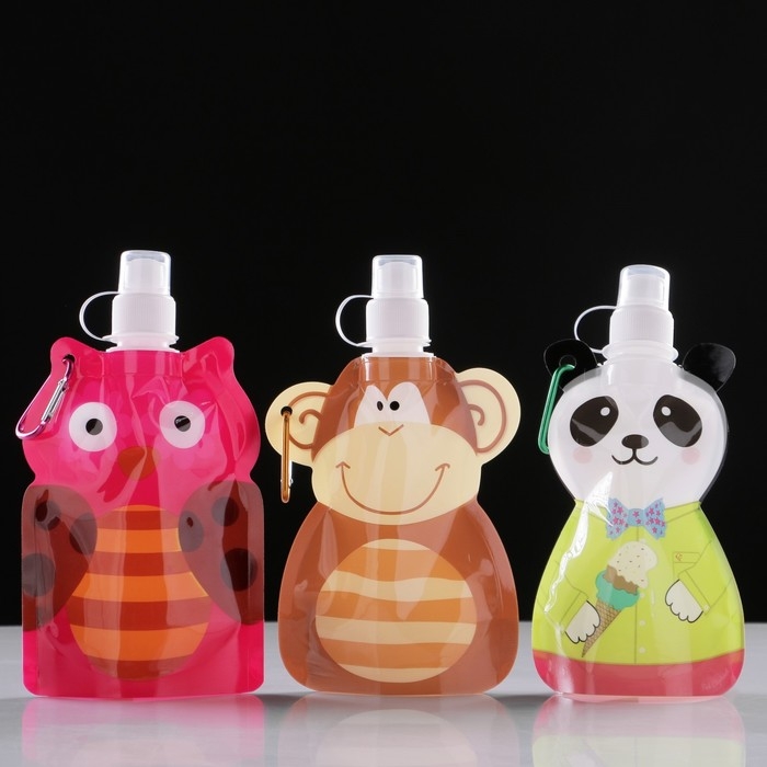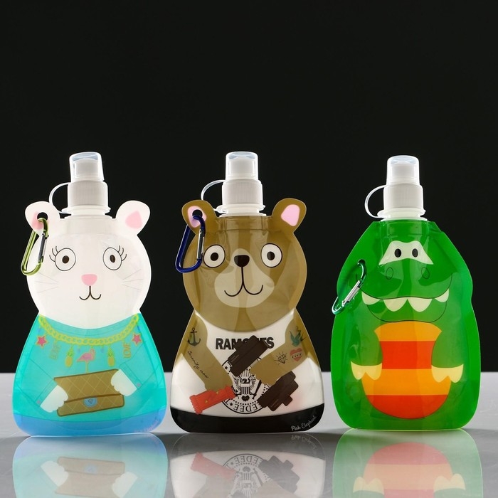 Фляжка для воды детская, 280 мл, "Зверята", 22 х 12 см, микс