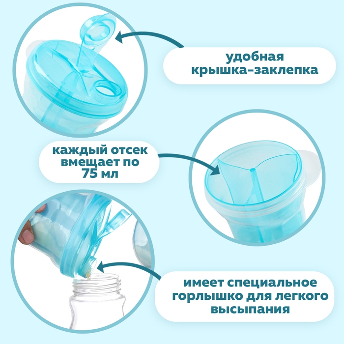 Контейнер для хранения детского питания, 3 секции по 75 мл., 9,5х8,5 см., 225 мл., цвет голубой