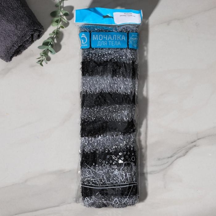 Мочалка для тела Доляна «Мужская», 12×45 см, чёрно-белый