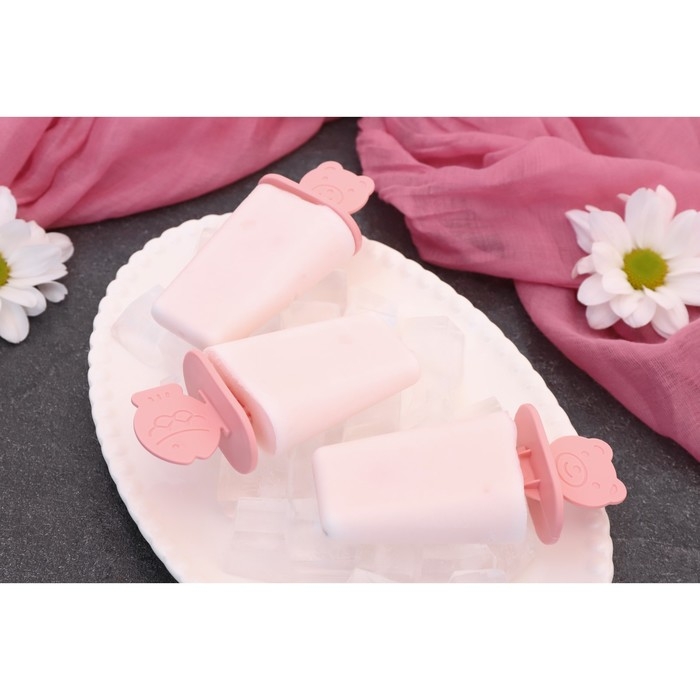 Набор форм для мороженого Доляна, 3 шт, силикон, 14×7,5×2,5 см, цвет розовый