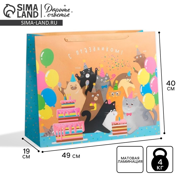 Пакет подарочный ламинированный, упаковка, «С Праздником!», XL 49 х 40 х 19 см