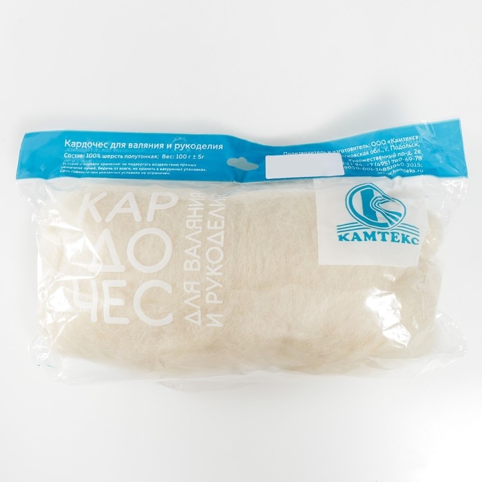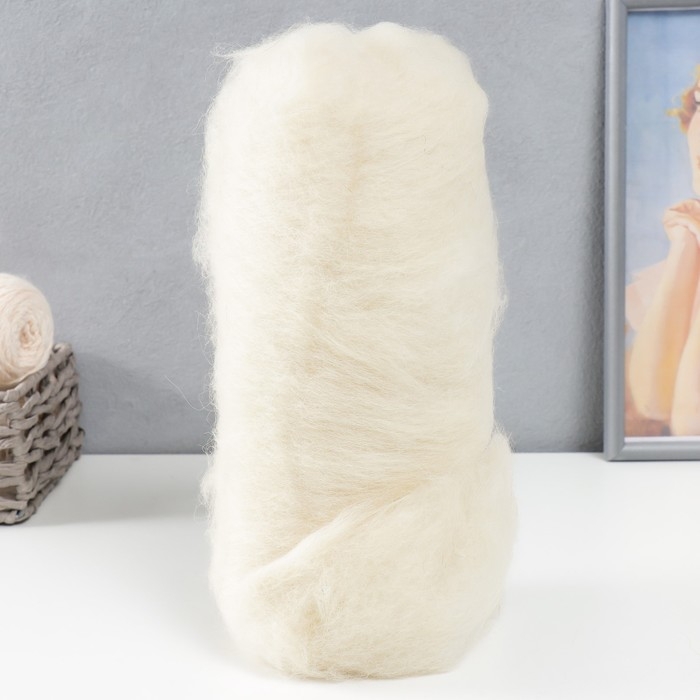 Шерсть для валяния "Кардочес" 100% полутонкая шерсть 100гр (001 суровый)