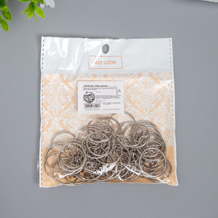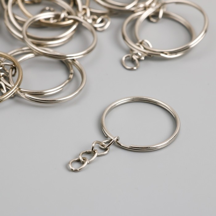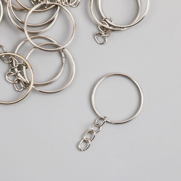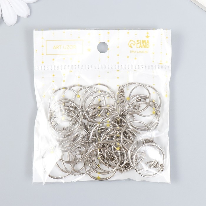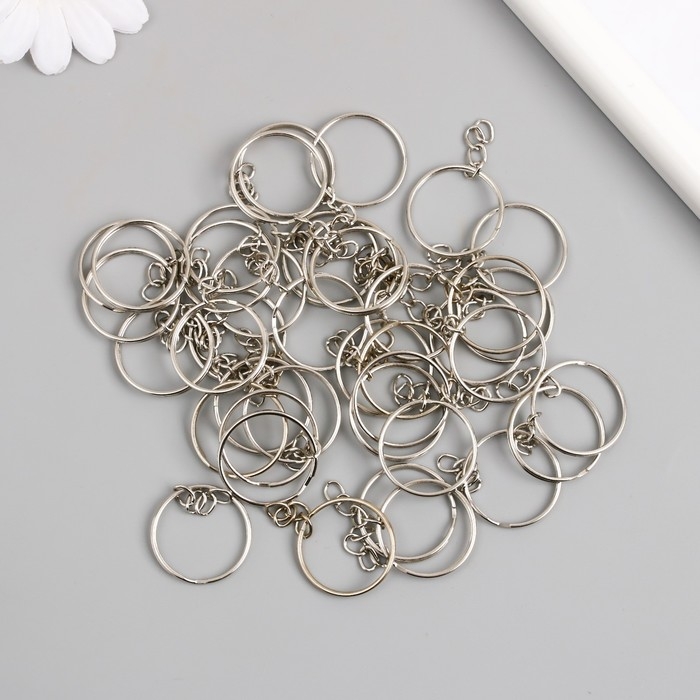 Основа для брелока кольцо металл с цепочкой серебро 2,5х2,5 см набор 40 шт