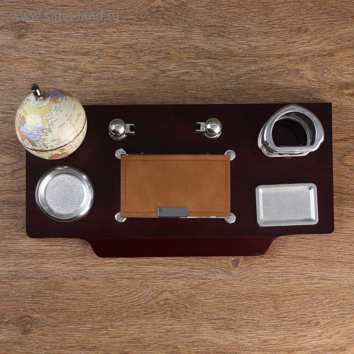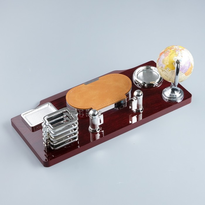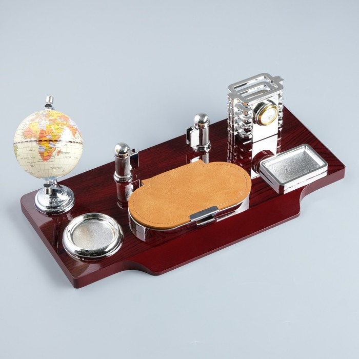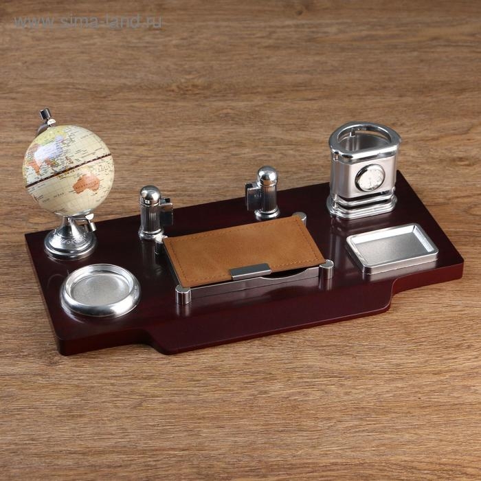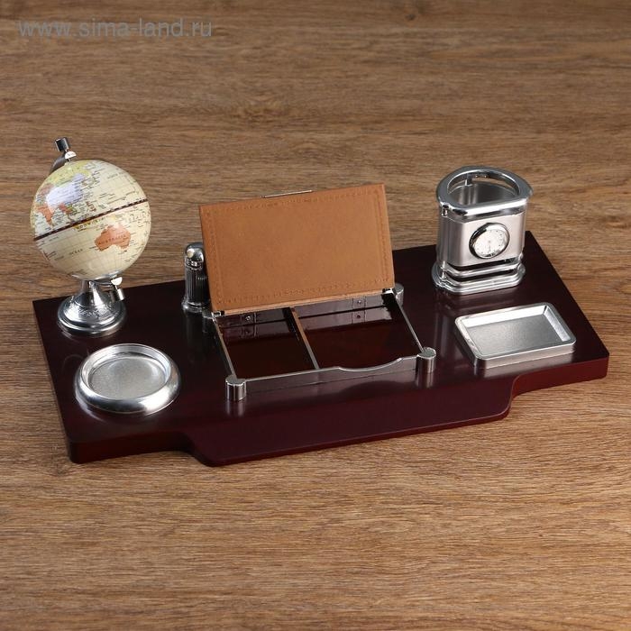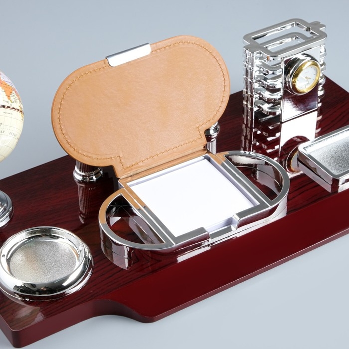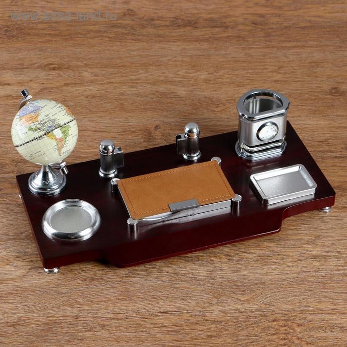 Набор настольный 7в1(часы, лок д/бумаги,визитица,глобус, подст д/печати,каранд) 40*20*17,микс