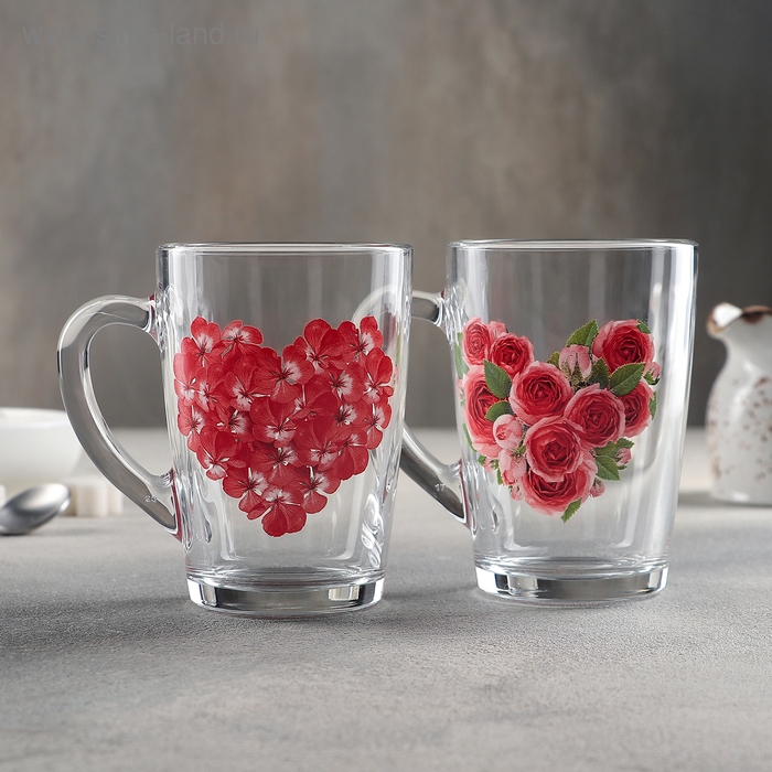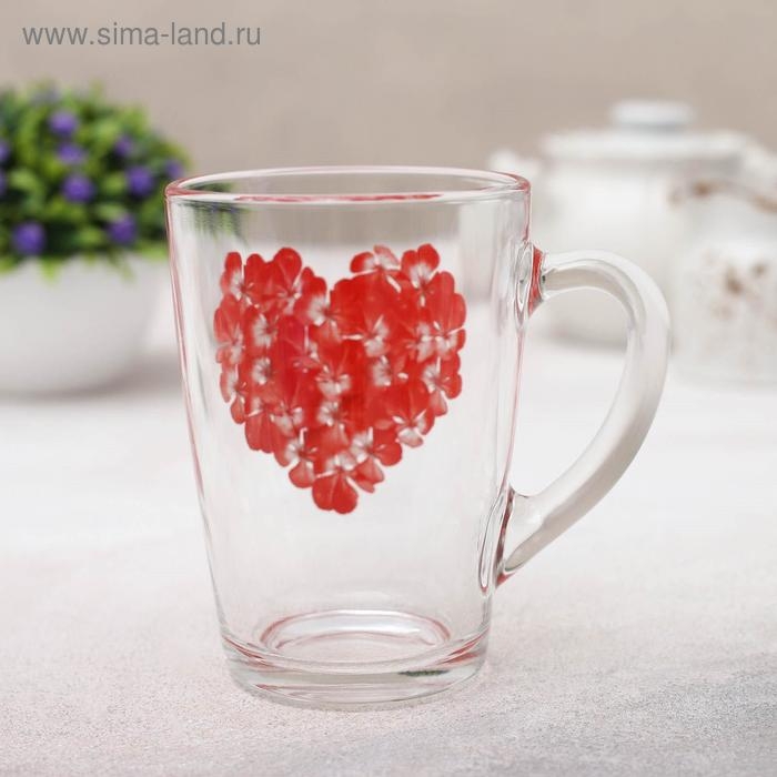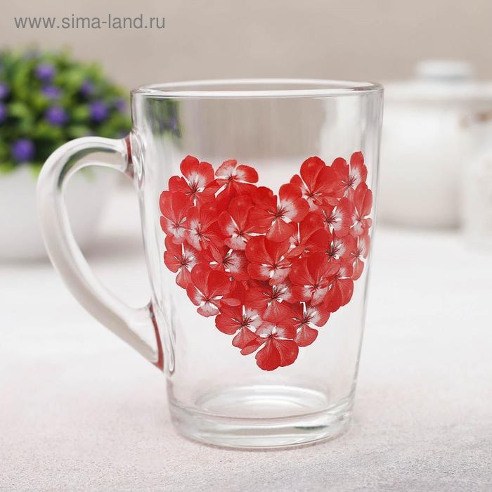 Кружка стеклянная «Цветочное сердце», 300 мл, рисунок МИКС