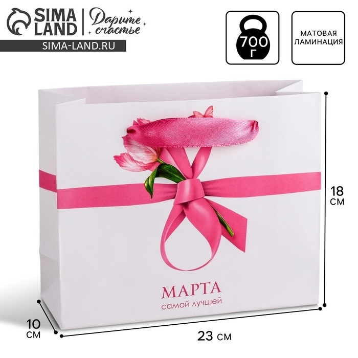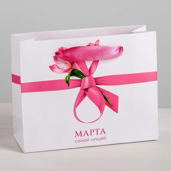 Пакет подарочный ламинированный горизонтальный, упаковка, «Самой лучшей 8 марта», MS 23 х 18 х 10 см