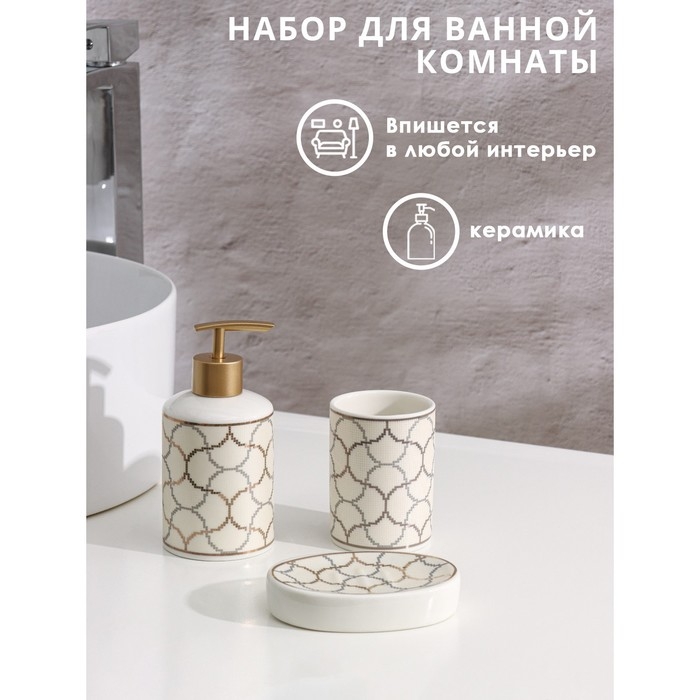 Набор аксессуаров для ванной комнаты Доляна «Сицилия», 3 предмета (дозатор 350 мл, мыльница, стакан)