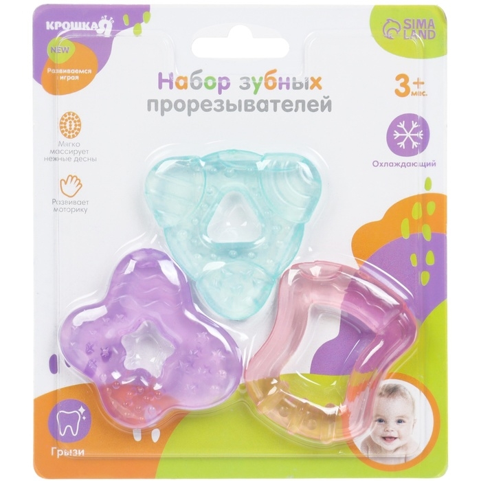 Набор прорезывателей охлаждающих с водой «Зубки», 3 шт, цвет МИКС, Крошка Я