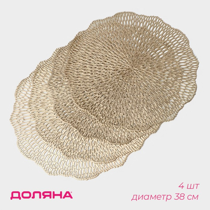 Салфетки сервировочные на стол Доляна «Мэри», d=38 см, 4 шт, цвет золотой