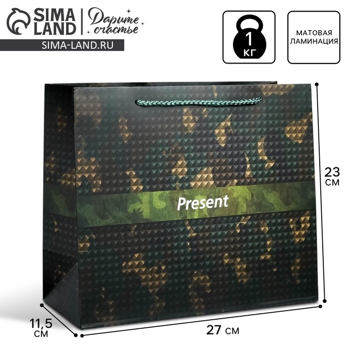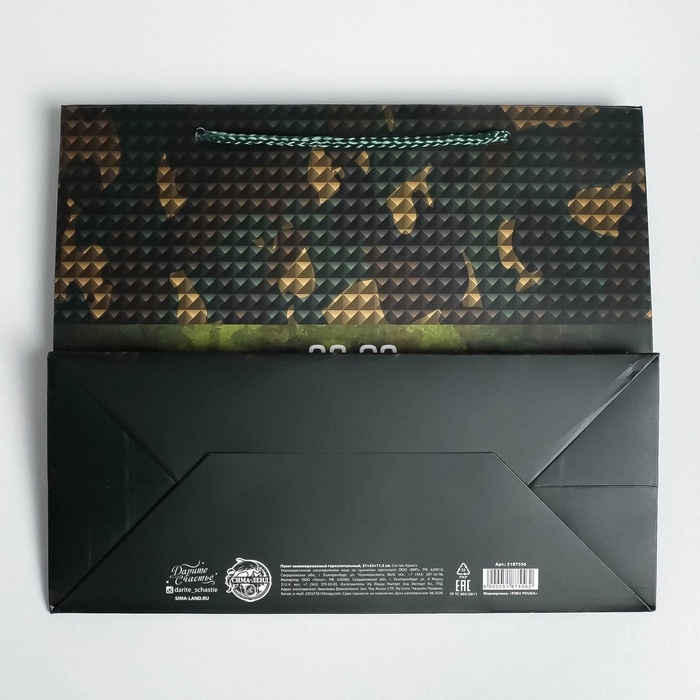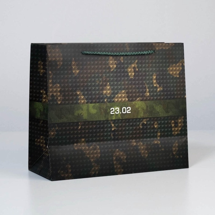 Пакет подарочный ламинированный горизонтальный, упаковка, «С 23 февраля», ML 27 х 23 х 11.5 см